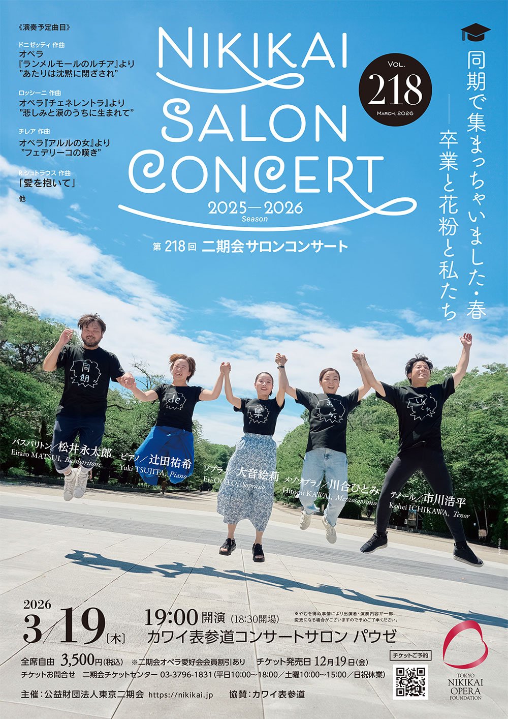 2026 031 19 (木)View MoreNIKIKAI SALON CONCERT 2025-2026 Season二期会サロンコンサートVol.218~同期で集まっちゃいました・春・卒業と花粉と私たち~