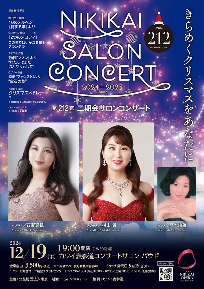 Leaflet (PDF) NIKIKAI SALON CONCERT 2024-2025 Season NIKIKAI SALON CONCERT Vol.212 A sparkling Christmas for you
