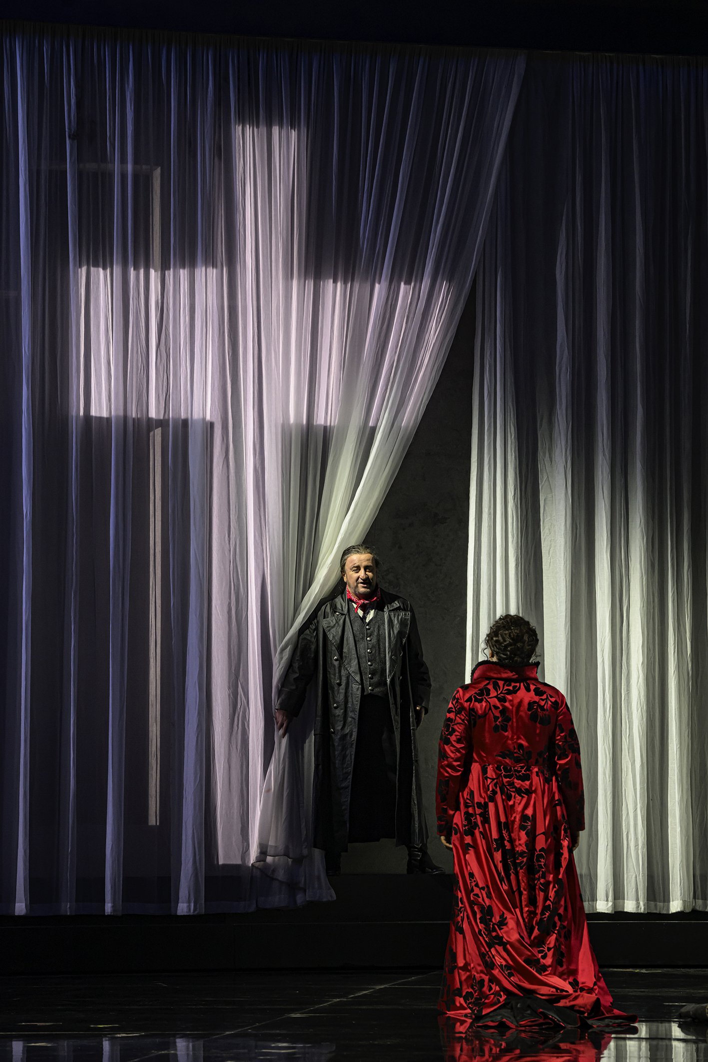 2人は逃亡中はぐれてしまい、お互いは死んだものと思っていました。一方、レオノーラの兄ドン・カルロは、侯爵の仇として2人への復讐を誓い、血眼になって捜索。レオノーラは危うく見つかりそうになりながらも、やっとのことで修道院にたどり着きます。そこでレオノーラはグァルディアーノ神父に真実を打ち明け、修道院近くの洞窟で、世を捨て隠遁して生きる道を選択します。