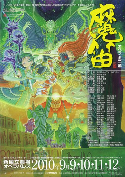 夜の女王に仕える3人の侍女が大蛇に追われた日本の王子タミーノを助ける。王子が気を失っている間にパパゲーノが登場、王子を助けたのは自分だと自慢する。侍女たちは王子に夜の女王の娘パミーナがザラストロに誘拐されたと知らせる。彼女の絵姿に一目惚れした王子は、パパゲーノをお供に救出へと向かう。ザラストロの神殿に到着すると、彼は実は聖人で、パミーナは無事だった。ようやくパミーナと出会った王子は、彼女と結ばれるために、パパゲーノと共に沈黙の試練に挑む。一方、パミーナは母・夜の女王に「ザラストロを殺せ!」と命じられる…。